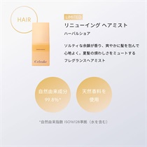 水とオイルの2層がもたらす、さらりとしたテクスチャーが夏髪の不快感をミュートし、しなやかに髪をまとめるフレグランスヘアミストが登場。潮風のようにクリアなハーバル・フローラルの香りで飾りながら、夏の髪にこもる汗や気になるニオイをケア。髪に軽やかな余韻を残しながら、紫外線による乾燥などをケアする天然成分*によるダメージ補修も期待できます。